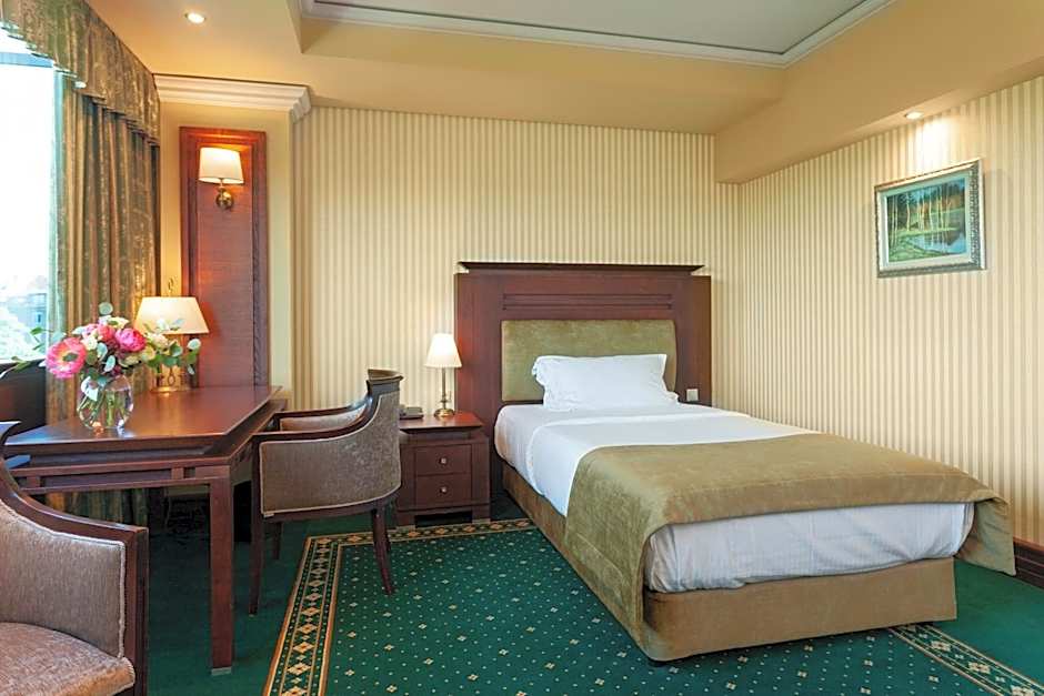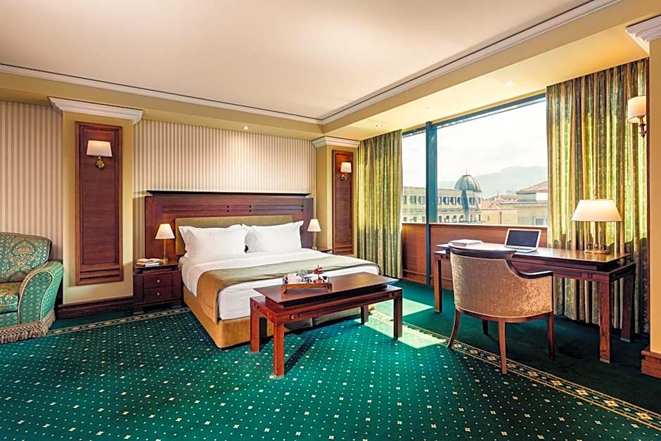 Get delighted by the luxurious atmosphere Grand Suites of 459 ft². Featuring a master king-size bedroom with a walk-in closet, a lounge with a comfortable sofa, a dining area for 6 people, and a separate working area. The apartments could be expanded with a connecting Superior twin room (subject to an extra charge). As an extra benefit, you will have access to а private lounge space /available up to 2 hours, booking required/. Enjoy a complimentary Two-Way private airport transfer with your booking.